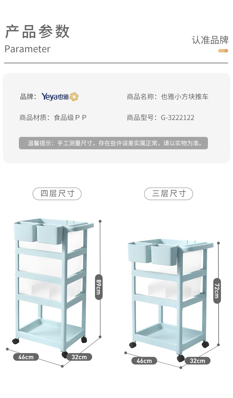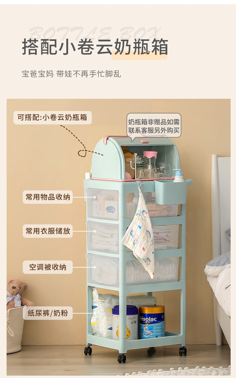 也雅(Yeya) 【婴儿食品级材质】推车置物架 宝宝用品收纳架 推车月子置物架 婴儿玩具收纳架储物盒