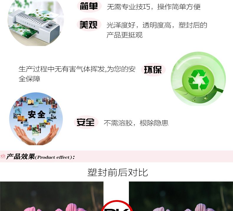 塑封膜过塑膜经济型A4照片膜相片膜护卡膜 塑封机使用耗材 (100片/包)