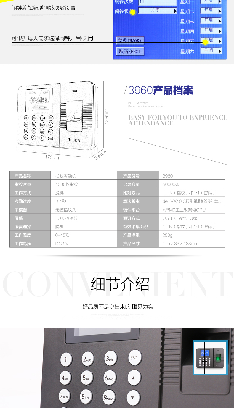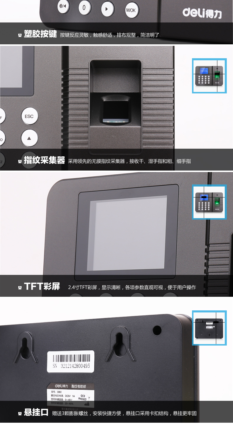 得力3960c指纹考勤机
