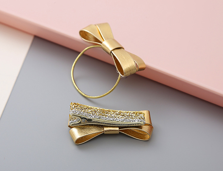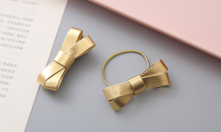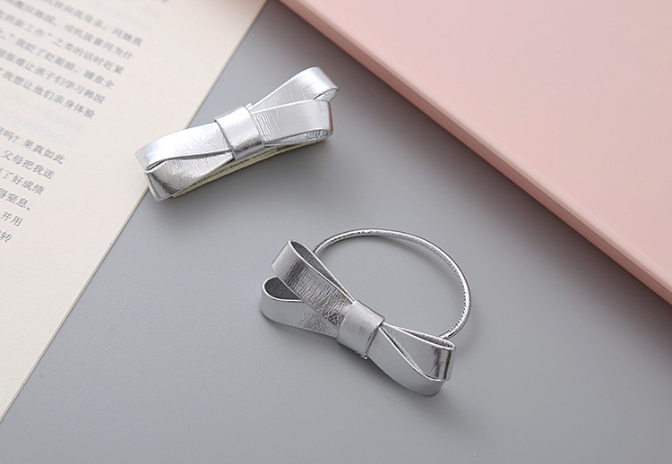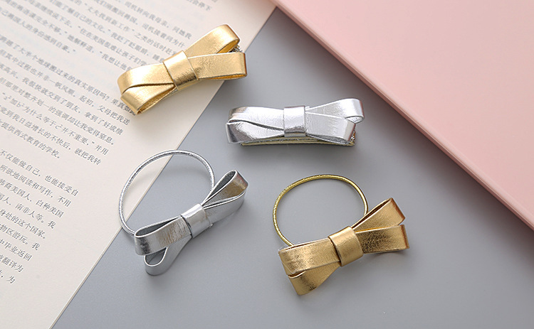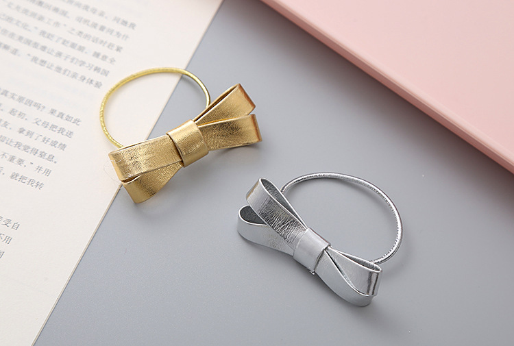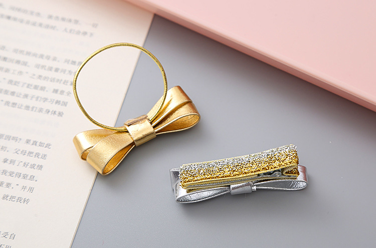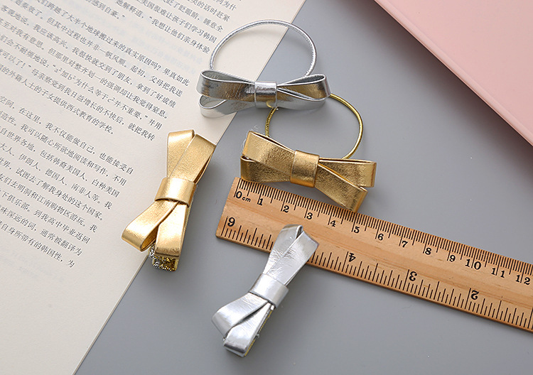 女孩文艺韩版金色银色Pu蝴蝶结发圈学生头绳公主发饰头饰儿童发夹